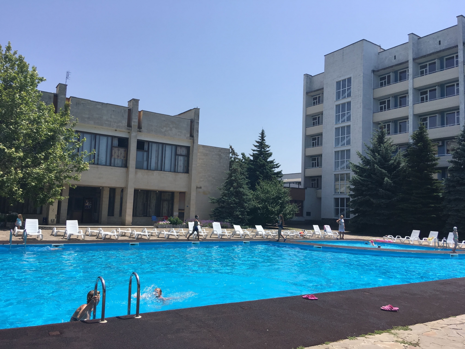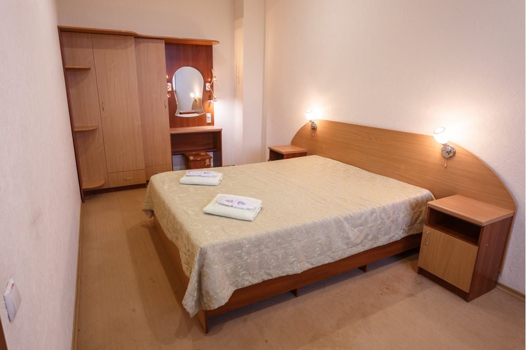 Пансионат «Южный» (Крым) располагается на окраине поселка Николаевка, в парковой зоне – закрытой и охраняемой. Гостям пансионата предоставляются номера 1 категории: Джуниор Сюит, Люкс, Студия, а также номера второй категории: Стандарт 2-х местный, Стандарт 3-х местный, Стандарт 4-х местный семейный, Стандарт 4-х местный семейный улучшенный, Стандарт 2-х местный улучшенный. В номерах первой категории и в улучшенных номерах второй категории установлены кондиционеры. В пансионате «Южный» (Николаевка) в Крыму есть свой медпункт с услугами врача и лечебные кабинеты: массажный, грязелечебный, нетрадиционной медицины, спелеокамера. На территории пансионата «Южный» (Николаевка) в Крыму функционирует бассейн с пресной водой 12х25 м, глубиной от 1,5 до 1,9 м, детский 60 см глубиной. Есть бадминтонная площадка (асфальтированное покрытие), волейбольная площадка (песок), игровой холл (зал с паркетным покрытием 200 м 2 ), настольный теннис, бильярд. Для детей оборудованы площадка для игр. Есть библиотека и зал для просмотра кинофильмов (270 мест). Регулярно проводятся развлекательные анимационные мероприятия. Разнообразное полноценное питание пансионата «Южный» (Николаевка) в Крыму гостей обеспечивают столовая, кафе, ресторан. Поселковый пляж находится на расстоянии 150 метров от корпуса. Работает бар, есть шезлонги, зонты можно взять напрокат.