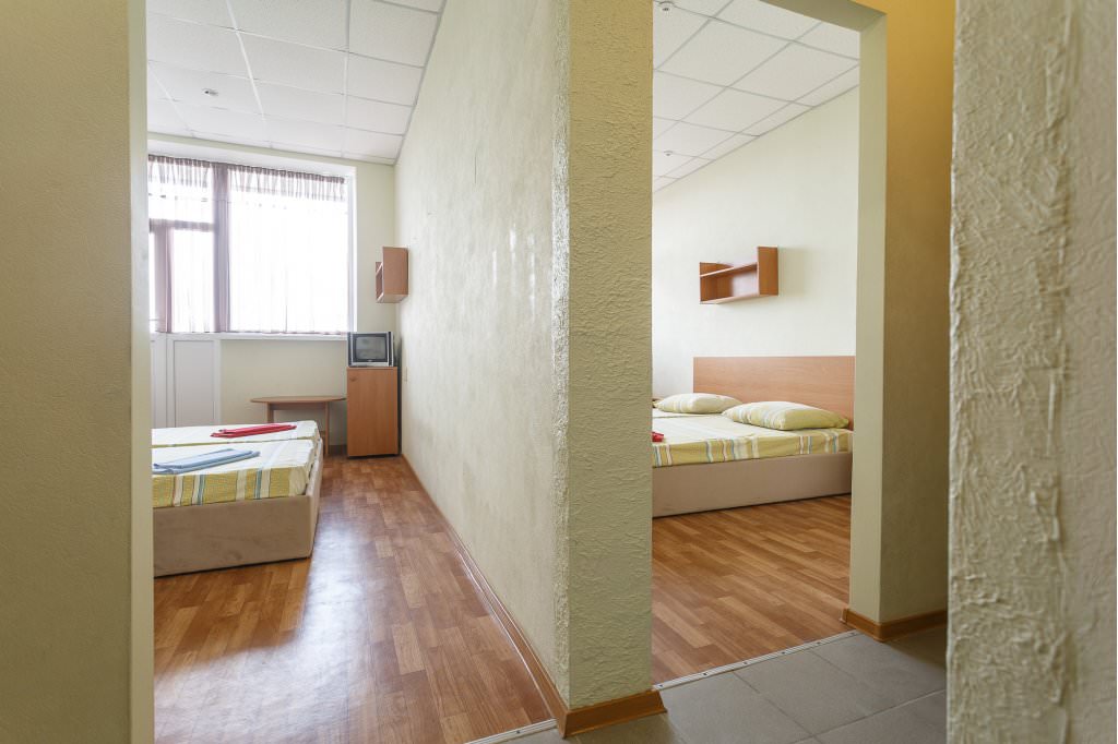 Это просторный двухкомнатный номер, рассчитанный на четырех человек с возможностью дополнительного размещения.